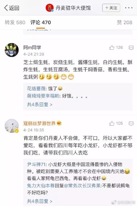 昨天,丹麦大使馆的一条微博引起了网友们的强烈“围观”。在这条微博下面,我国网友简直是“控制不住纸几”,强大“正义感”几乎爆棚!在这条微博下面,网友们简直是“倾毕生之所学”去出谋划策!“正义感”MAX!然而纵观这些评论,貌似都离不开“吃,”到底我们吃货国究竟是因为啥这么“激动”?