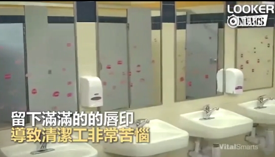 女生洗手间镜子留唇印 清洁工无奈放大招