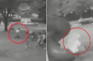 公园监控实拍小女孩滑梯内消失只留下一缕白烟