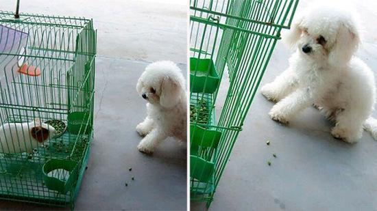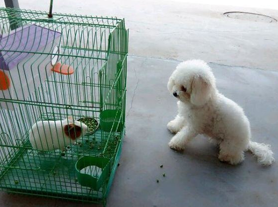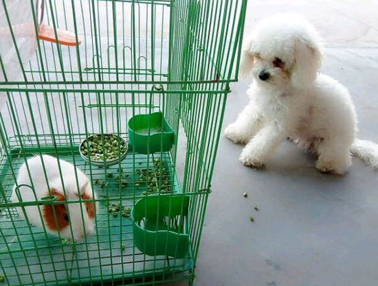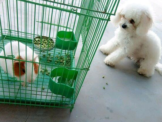 家里养了一只荷兰猪 结果小泰迪竟然这样对它