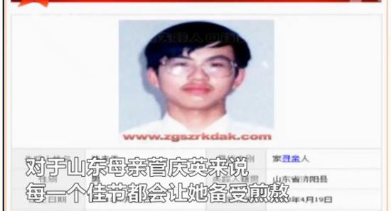 11张这两天,张来玉的母亲菅庆英在中国失踪人口档案库发布了寻找儿子的相关视频,引起了全国网友的关注。1999年,菅庆英18岁的儿子张来玉以山东省济阳县理科第一名的好成绩,被南京大学材料科学系录取。但是不到一年,2000年4月20日,菅庆英接到学校打来的电话称,儿子于一天前的上午突然走失,遍寻学校及周边地区,均没有线索。