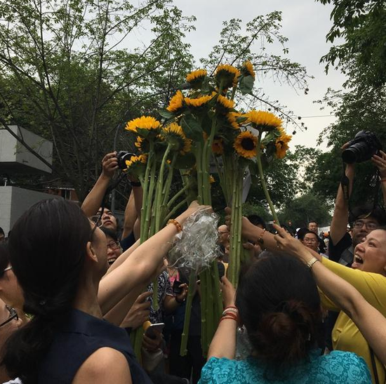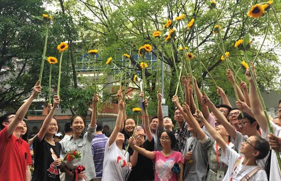 6张下午5点,英语考试结束,成都七中林荫校区考点大门打开,考生们有序走出考场,2017年高考正式结束。考生陆续走出考场,走出考场的同学们拿着寓意夺魁的向日葵合影留念