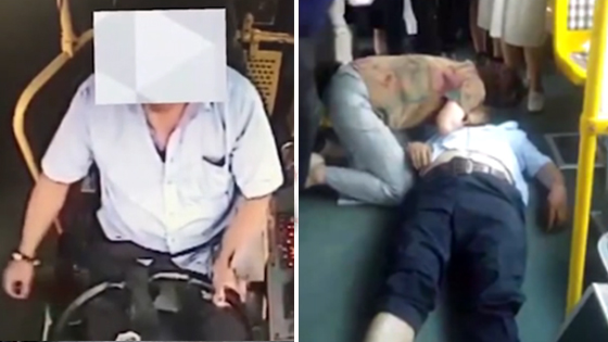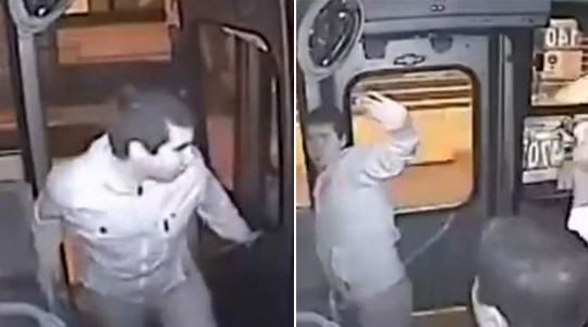 公交车司机感觉不对赶紧关门 车上监控拍到这一幕
