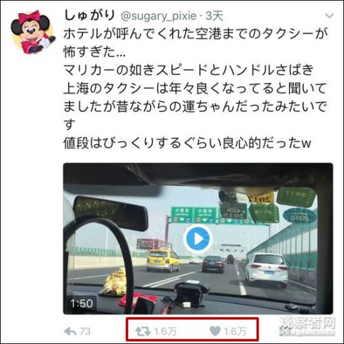 这位日本女乘客自称从没想过“上海的哥的一脚油门,成为了我噩梦的开始……”,她在推特评论中也多次强调,自己当时吓到快要哭出来(委屈)。虽然经历了惊险之旅,不过在接受中国媒体采访时,女孩也表示自己保存着乘车发票,但不打算追究司机的责任,希望媒体不要公开司机的工号。
