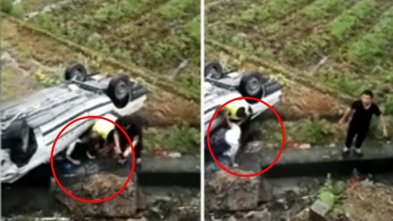 另有两段视频显示,车辆撞开公路护栏,翻入路边三四米深的地里,女考生被从车里拉出来。视频中有人打伞,可以看到公路路面是湿的,女考生称自己“太紧张了”,有人说“人没事就行,路太滑了”。