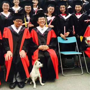 因为乖巧又呆萌的长相,这只流浪狗平时在学校就圈了一票粉丝,文新学院拍毕业照时也它也就很淡定地跟了过来,不慌不忙地走到第一排。还别说,真会挑位置,它走了一圈后选了院长旁边的空位,径直坐了下来。