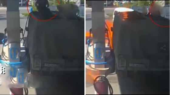 在加油站司机居然点燃打火机 看油是否装满