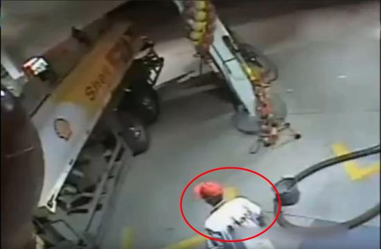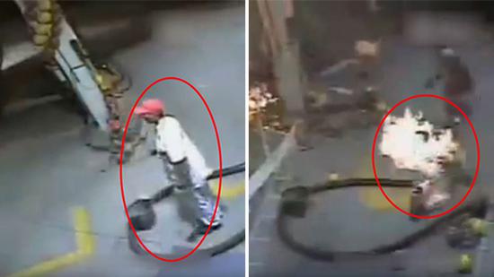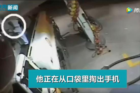 他在加油站掏手机接电话 下一秒被烈焰吞没