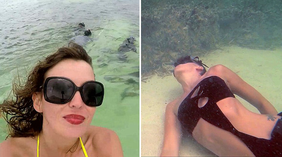 性感模特下水和700条鳄鱼同游 拍摄花絮好刺激