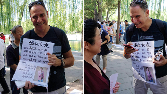 老外为儿子举牌征婚 希望儿子找个中国女友
