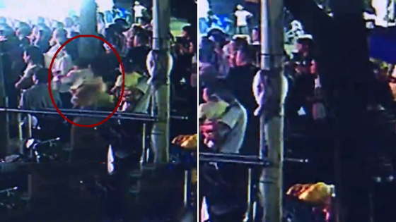 9月13号晚上,常熟一家火锅店门口搭起了舞台,表演节目,周围聚集了不少围观群众。七点钟左右,市民位女士抱着女儿出现在现场。然而就在她向舞台移动的过程中,她和女儿一下子消失在了画面中。
