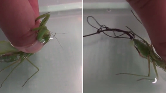 将一只看似健康的螳螂放入水中 惊悚的一幕发生