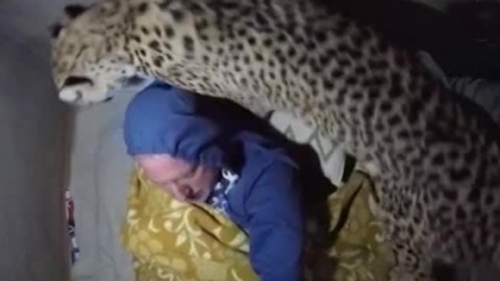 动物学家在帐篷里睡觉 猎豹突然闯进来....
