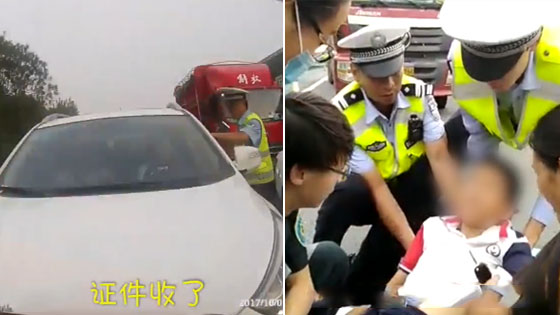 车辆占应急车道堵住救护车 交警发飙了