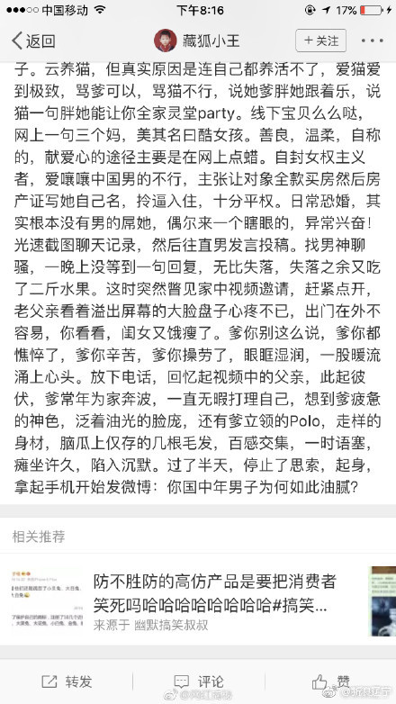 最近,微博上掀起了一阵diss的风潮,起因是冯唐发表了一篇题《如何避免成为一个油腻的中年猥琐男》的文章,从而引起了一阵对于中年油腻男的讨论,其中有认同,也有反对,进而引发了新一轮关于“中年油腻女”“恶臭女孩”“恶臭男孩”的讨论↓↓↓