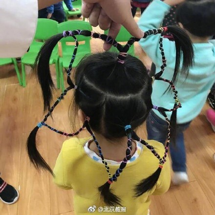 11月8日下午,汉阳区玫瑰第二幼儿园中二班李奕辰放学了,妈妈接她的时候笑得直不起腰,拉着女儿拍了又拍,原来幼儿园的男老师给她编了个“网红辫”↓↓↓