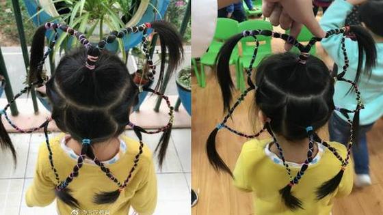 超萌!幼儿园男老师给小姑娘编“网红辫”
