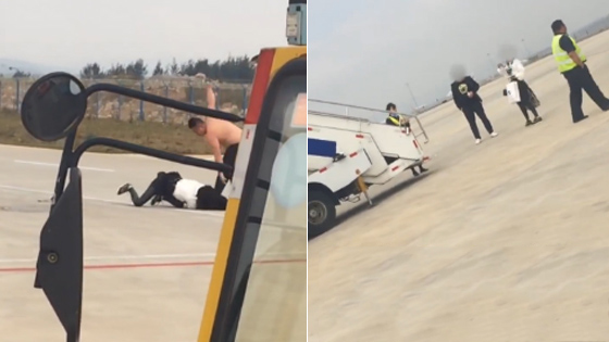 奇葩!夫妻机场停机坪打斗 一飞机乘客等他们