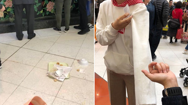 女生称在香港机场被骂"X你妈" 遭对方泼粥