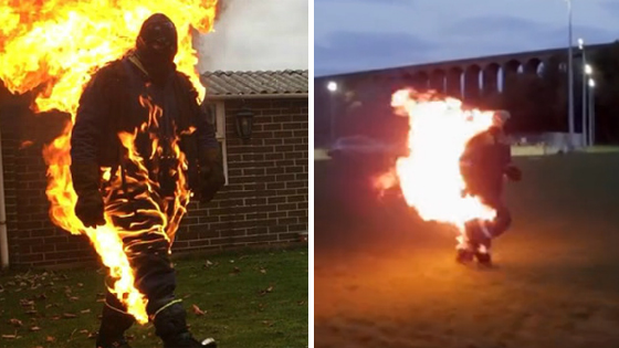 男子为慈善筹资 全身冒火百米冲刺破纪录