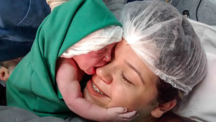 刚出生婴儿抱着妈妈亲吻 片刻后发出啼哭