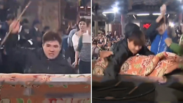 真出事了!民众百米冲刺抢头香 香炉被撞翻