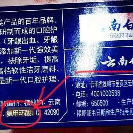 云南白药牙膏被指止血是靠西药氨甲环酸