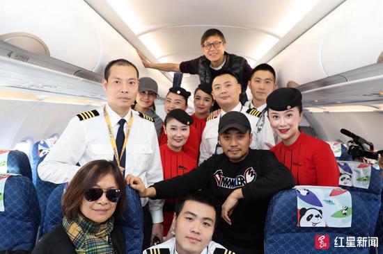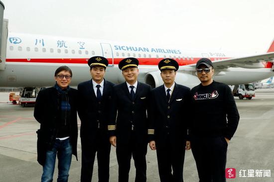 令人惊喜的是电影《中国机长》导演刘伟强,监制李锦文,主演张涵予和袁泉也乘坐这趟航班,与“中国民航英雄机长”刘传健、“中国民航英雄机组”全员共同见证了这个特殊时刻。