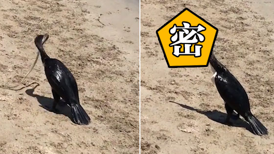 海鸟吞下毒蛇 蛇不仅活着还试图钻出>>