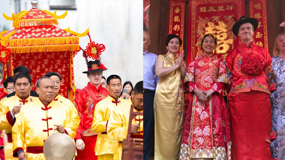 甘肃小伙娶英国媳妇 宾客狂拍新娘
