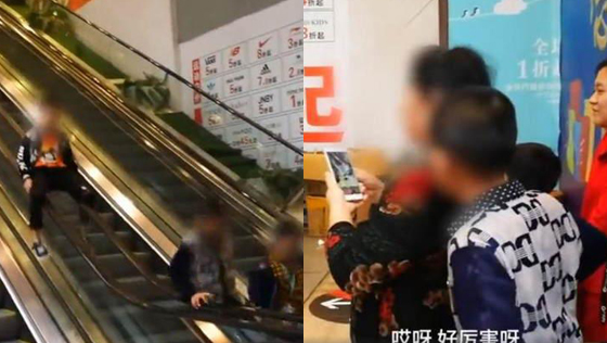 熊孩子把20米长的扶梯当滑梯,家长边录像边夸:真厉害