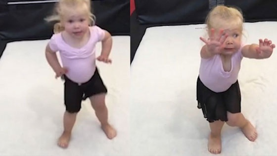 认真又可爱!小女孩体操课上摔倒 仍不忘摆姿势