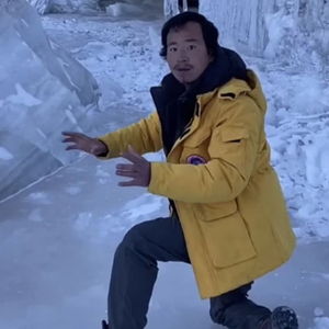 在那种时候,他会拍下视频,指着冰层里微小的气泡向人们解释,说冰川的形成来自积雪互相挤压,积雪疏松多孔,会留下气泡,经过上千年的相互作用,冰层会变得越发致密。同时,如果冰块位于水流通道附近,并且“(冰层)里面的微观结构接近光波的波长的时候,才会呈现一种非常梦幻的蓝色”,他轻轻用手拂过蓝冰,说那看起来就像琉璃。