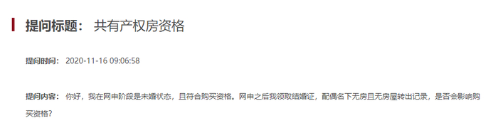 (二)申请家庭应符合本市住房限购条件且家庭成员在本市均无住房。一个家庭只能购买一套共有产权住房。单身申请,婚后配偶在京无购房记录,不影响购买资格。
