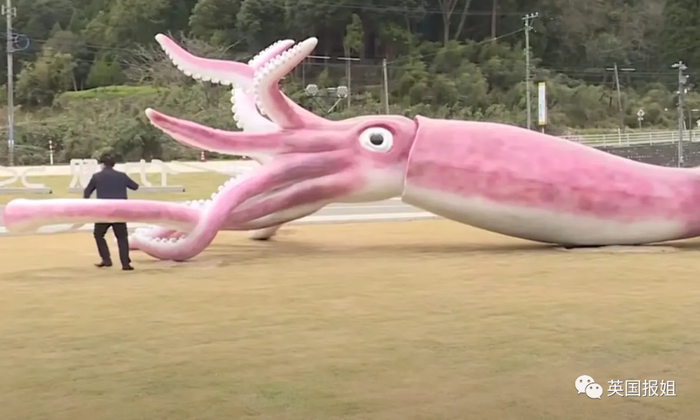 日本小镇被指责用新冠纾困金建造巨型粉色乌贼雕像。