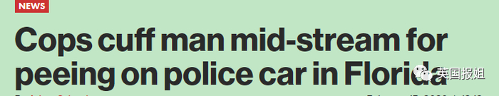 佛罗里达州一男子冲警车保险杠小便,没尿完就被警方拷上带走。