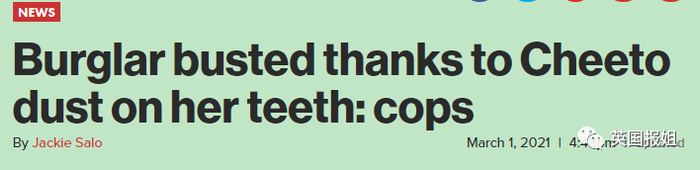 强盗入室吃光屋主零食,逃跑时被盘问,因牙上粘满“奇多”残渣被当场拘捕。