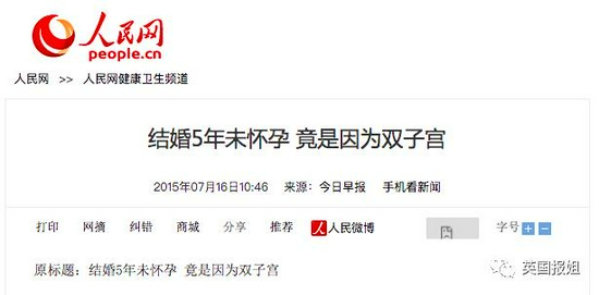 国内这样的患者也有,2015 年时,《今日早报》就曾报道,广东的马女士(化名),结婚 5 年没有怀孕,去浙大医学院妇产科检查,才发现自己双子宫的情况,并在手术和试管生殖技术的帮助下,成功生下了宝宝。