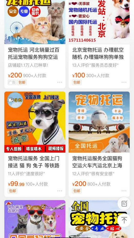 在这种情况下,宠物托运机构如雨后春笋般涌现。在淘宝上搜索关键词,可以看到数百家的机构。