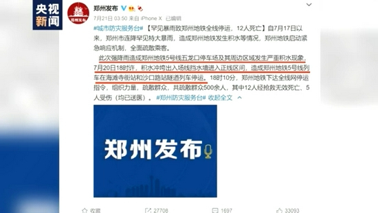 雨太大,人们就更关注人,之所以大家都知道了郑州地铁五号线,那是因为在这里就有12名乘客不幸遇难,与人的性命相比较,物质的损失再大都显得小。