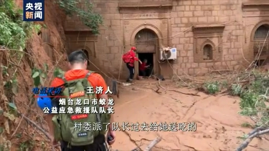 烟台龙口市蛟龙公益应急救援队队长 王济人:我们去那几个村庄都是断电以后没有网络,手机打不通,短信也发不出来。有一个老太太,她那个窑洞基本上里面全都塌了,她没办法就在客厅那一点地方一直在那站着她说女儿都赶不过来,村委派了队长过去给她送吃的。