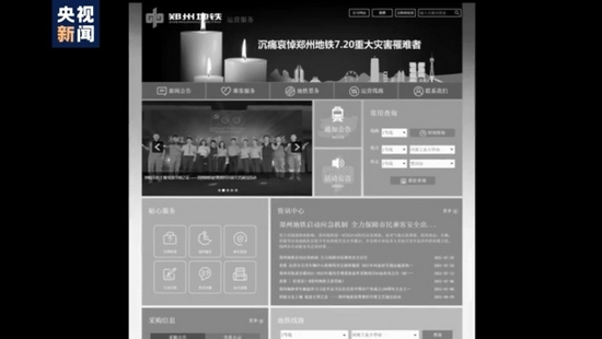 事发之后,郑州地铁全线网停运,地铁官网以黑白色调悼念罹难者。目前,地铁清淤工作还在开展中。