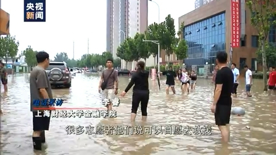 郑州市民 李若彤:刚开始的时候路上还有一些行人,但是到后来基本就没有行人了,路上的车都是寸步难行然后打着那种远光灯慢慢向前走,就是到了大概下午四点多钟的时候所有的公交车基本都属于熄火的状态,然后在附近可以看到有一些居民,就是在那个马路的中央被困,有很多的好心的市民拿出来很大的麻绳,十几个人牵成一股绳去救人。