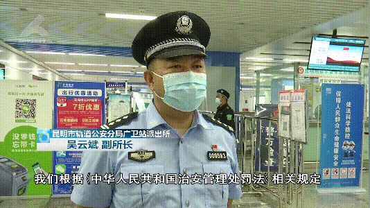昆明市公安局城市轨道交通分局广卫站派出所副所长吴云斌:“公安机关将对发生在轨道区域内的各类违法行为,依法严厉打击!也提醒广大女性乘客,在乘坐地铁时如果遇到猥亵、偷拍 、偷窥等情况,一定要及时呼救,并选择立即报警。”