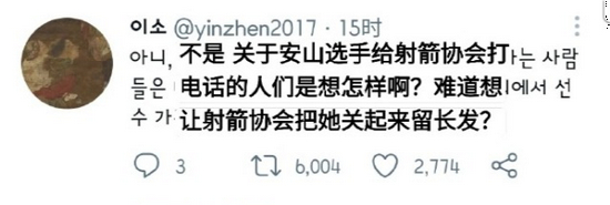 就因为安山的短发无意中扎到了他们的玻璃心,韩国男网友就要求射箭协会让安山退还金牌并道歉,这种无脑且迷惑的行为也让人无力吐槽。