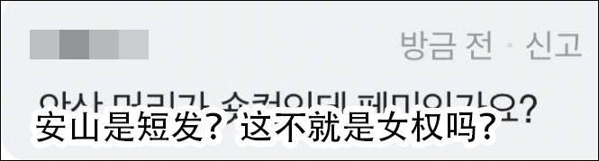 韩国男网友之前搞出“厌男”手势风波已经够无语了。没想到现在连短发女生也被划为“厌男”群体,甚至连为韩国争得奥运双金的安山也不放过,实在让人想不通。
