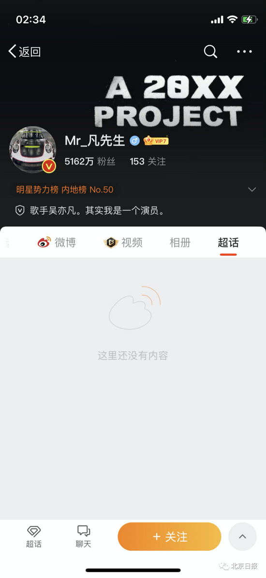 今天凌晨2时许,北京日报(ID:Beijing_Daily)注意到,新浪微博上吴亦凡的粉丝聚集地“吴亦凡超话”已经被关闭。