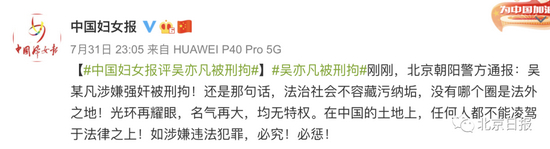 随后,相关话题#吴亦凡被刑拘#登上微博热搜。@人民日报、@中国长安网、@法治日报、@中国妇女报等接连就此事发声。