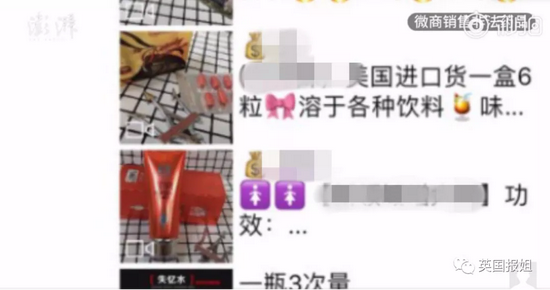 一些采访报道中能看到销售非法药品的微商,打着成人用药的名义,推广隐藏起来的产品。
