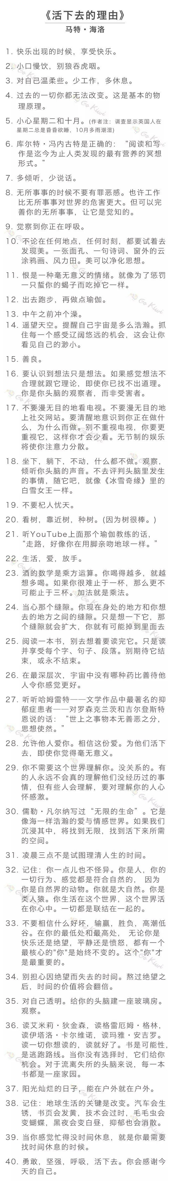 发现君想分享给大家英国作家马特·海洛总结的经验,在他《活下去的理由》这本书中,给出关于“如何面对生活”的40条建议。